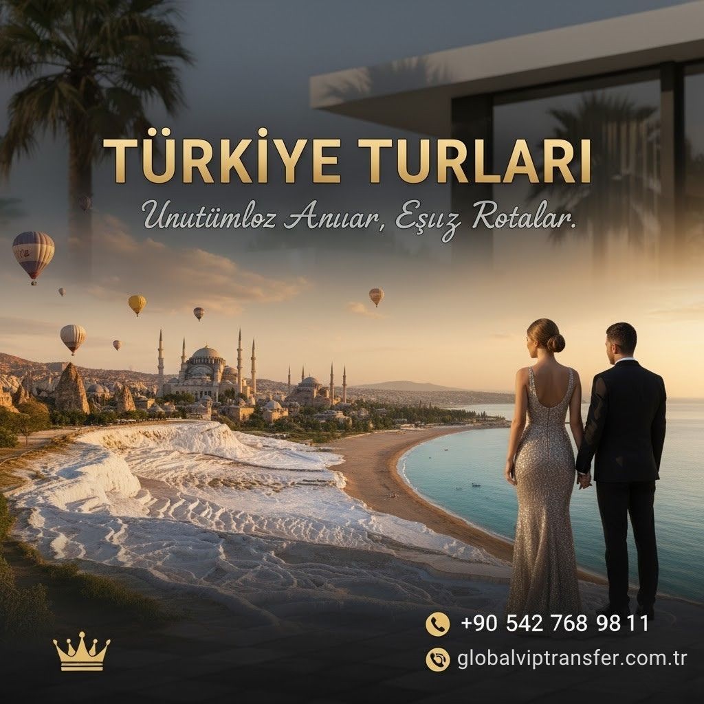 Türkiye, tarihi mirası, doğal güzellikleri ve kültürel zenginlikleriyle dünyanın en etkileyici ülkelerinden biridir. Global Vip Transfer olarak; İstanbul’un tarih kokan sokaklarından Kapadokya’nın masalsı coğrafyasına, Ege’nin turkuaz kıyılarından Karadeniz’in yemyeşil yaylalarına kadar birçok özel tur alternatifi sunuyoruz.